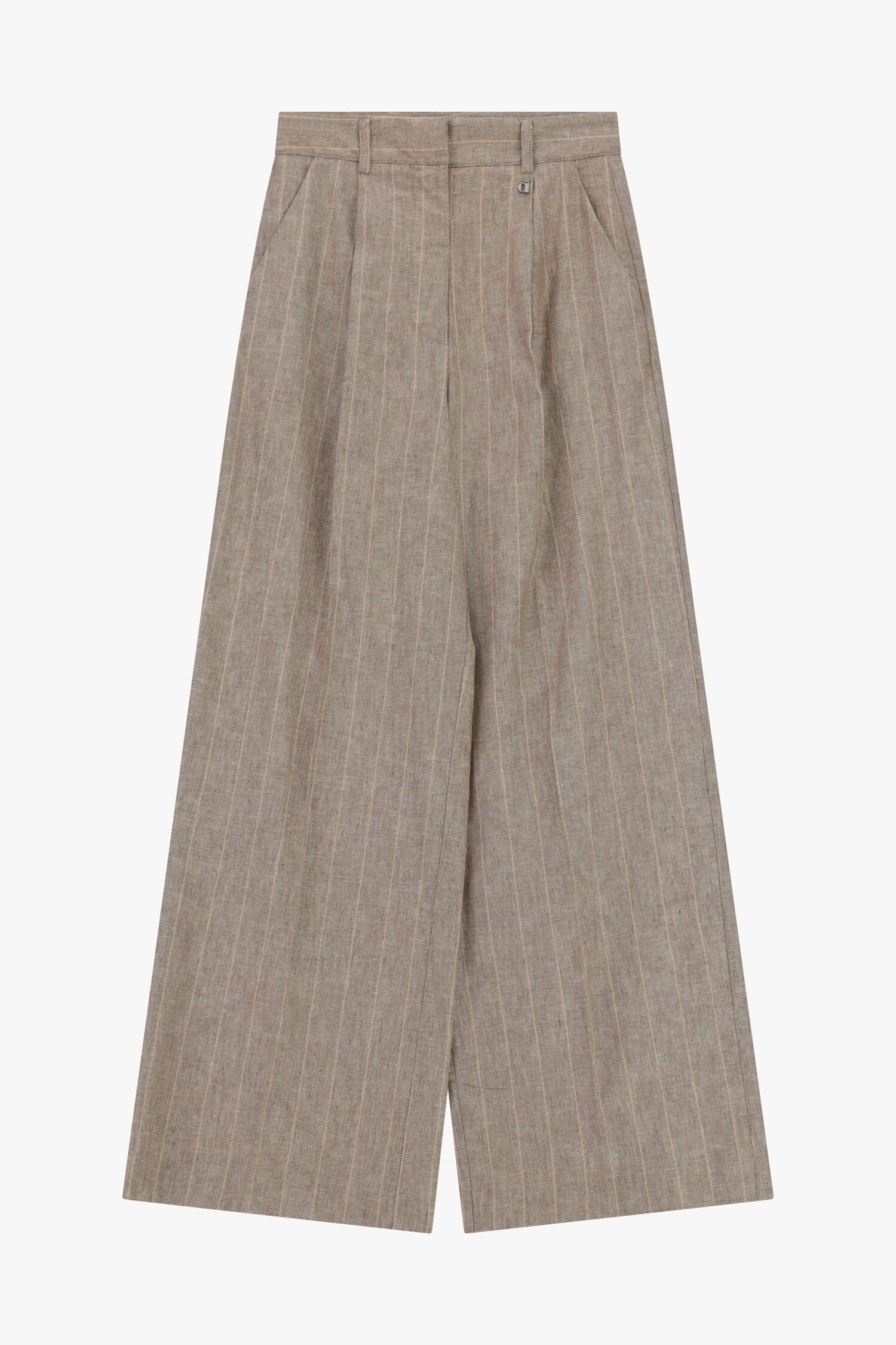Pantaloni palazzo a righe con pinces e tasche laterali