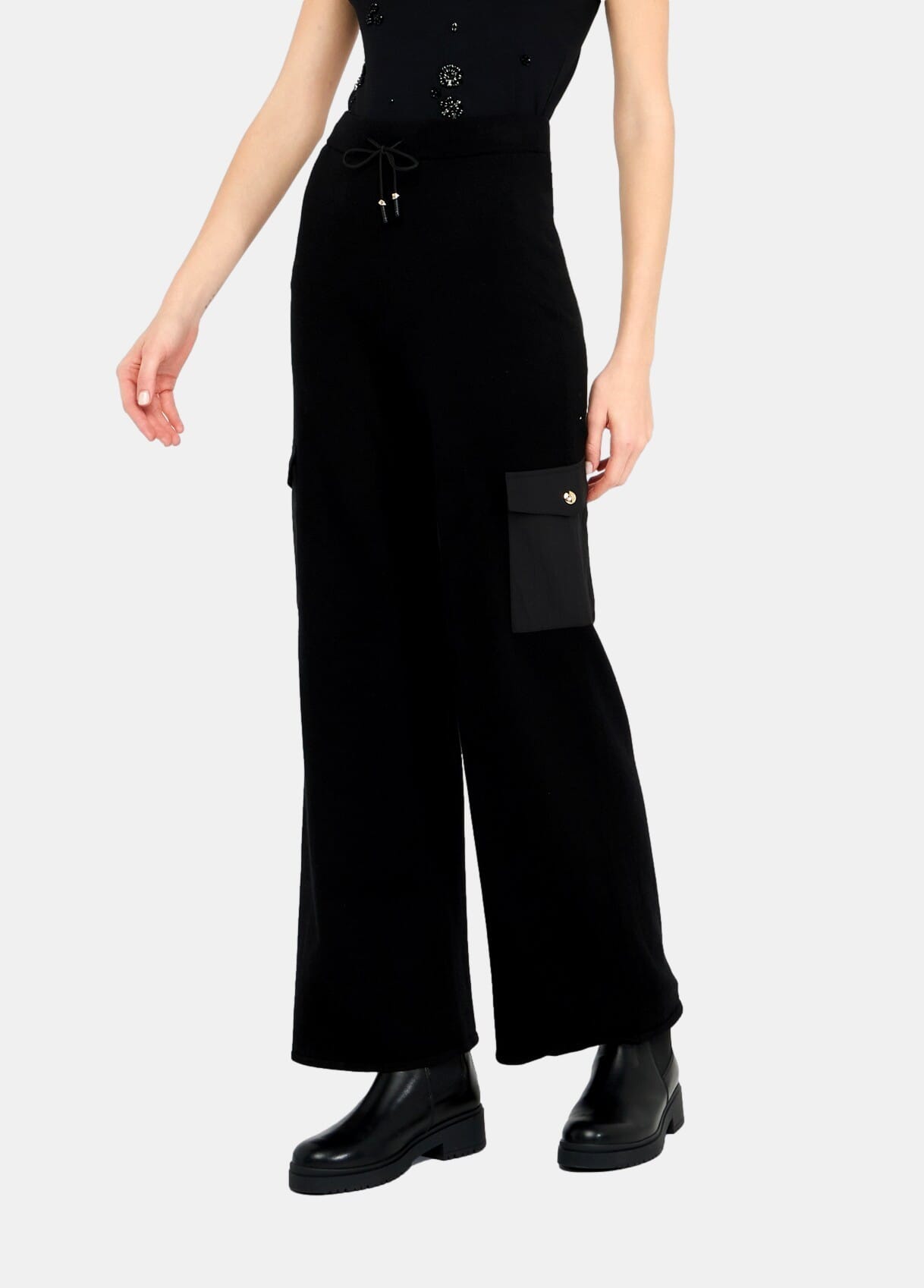 Pantaloni jogging,realizzati in maglia di misto viscosa,cintone elastico con coulisse in vita,tasche cargo in nylon,ecosotenibile.