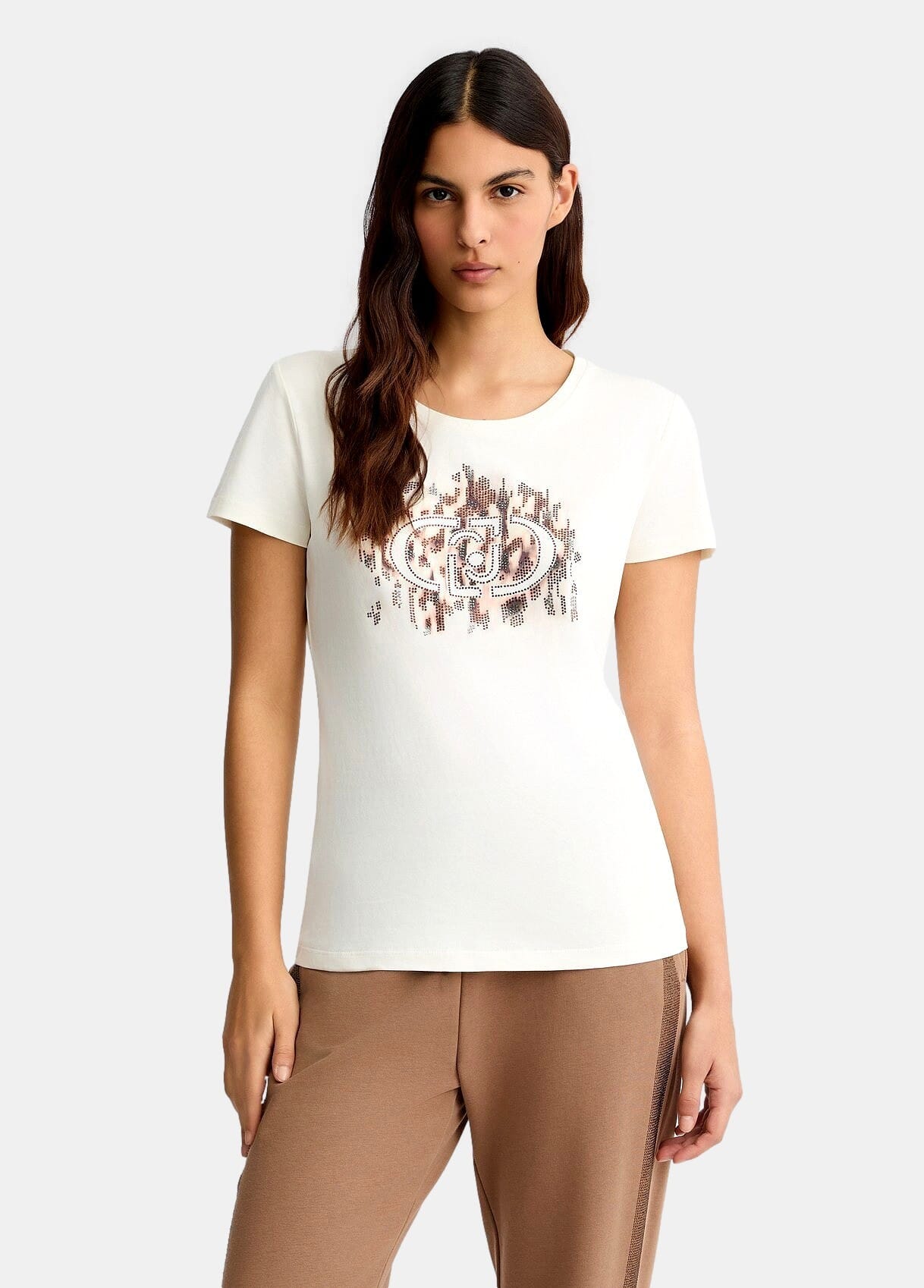 T-shirt con logo animalier e strass,in jersey di cotone stretch,scollo rotondo,maniche corte,ecosostenibile.