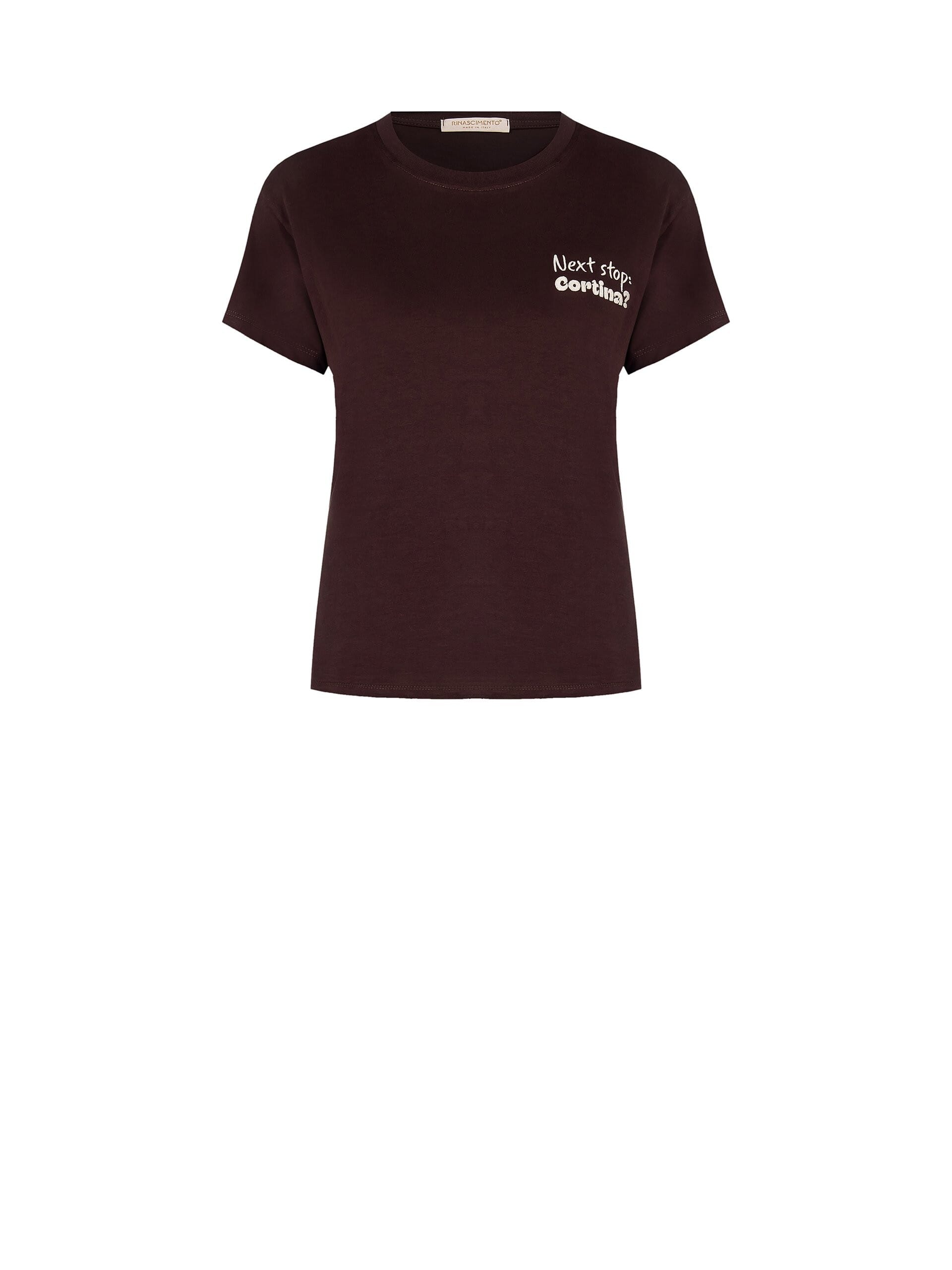 T-Shirt Regular In Cotone Con Slogan Ricamato Crema Lato Cuore Rinascimento