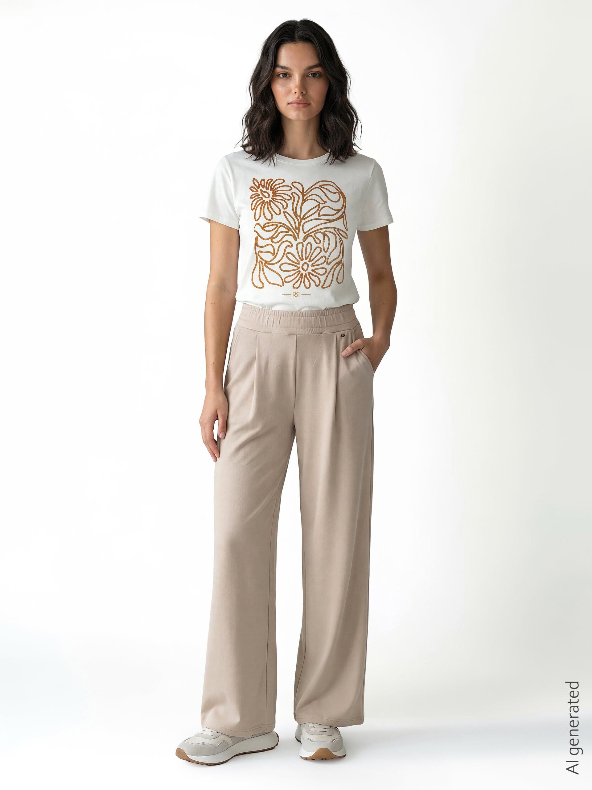 Maglia in morbido jersey di cotone, linea dritta che accompagna la silhouette senza segnare. Il maxi motivo floreale grafico e il logo frontale aggiungono un tocco ricercato. Perfetta con denim o blazer per un everyday look curato, dall’ufficio al tempo libero.
