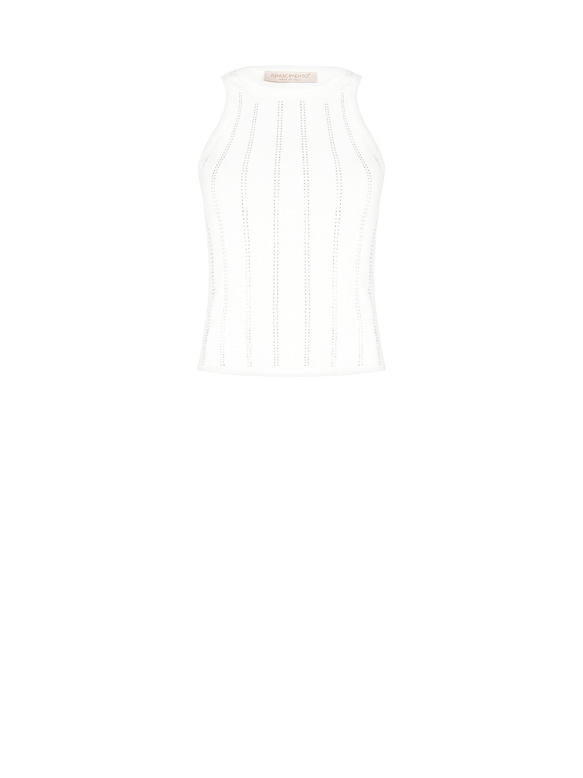 Top Aderente a Coste in Misto Cotone con Strass Iridescenti