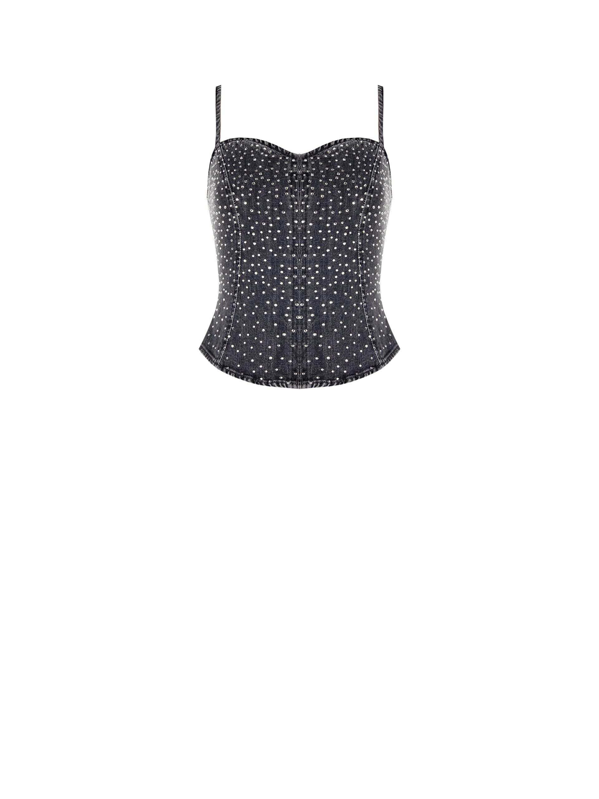 Top Bustier in Denim Ricoperto di Strass