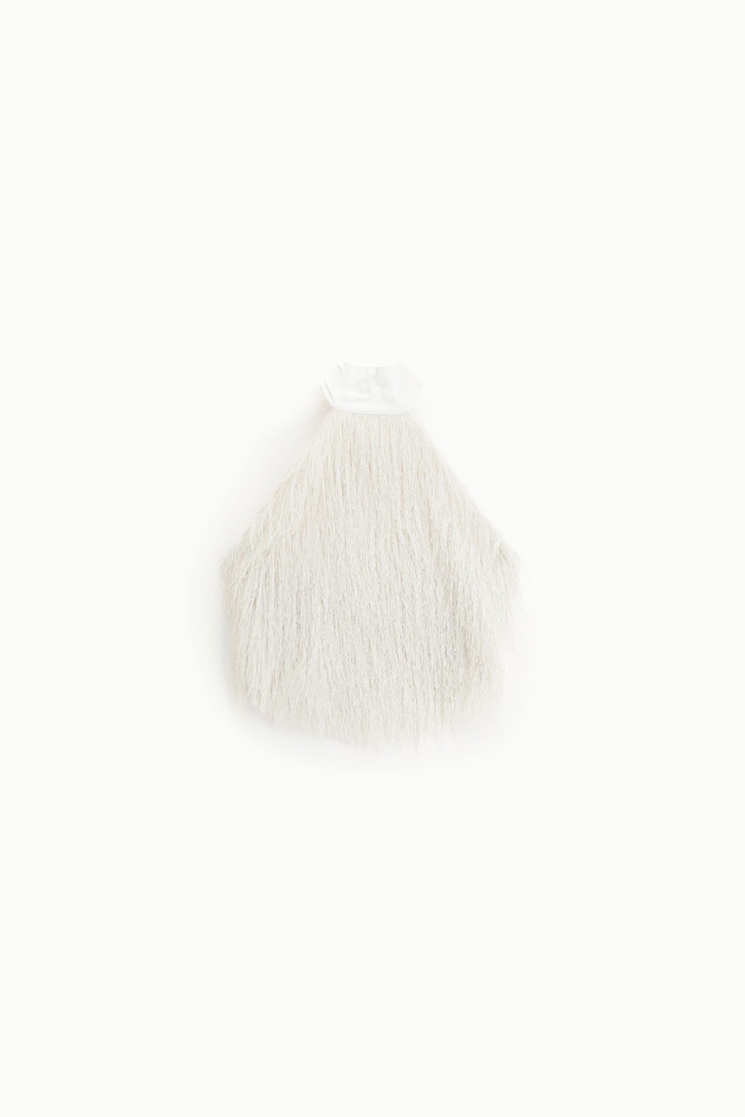 Lasciati sorprendere da questo top corto con frange e scollo allacciato dietro. La silhouette morbida e il dettaglio del fiocco sulla nuca aggiungono movimento e originalità al tuo look quotidiano. Perfetto per valorizzare pantaloni o gonne a vita alta, è il dettaglio speciale che rende ogni outfit unico e personale.