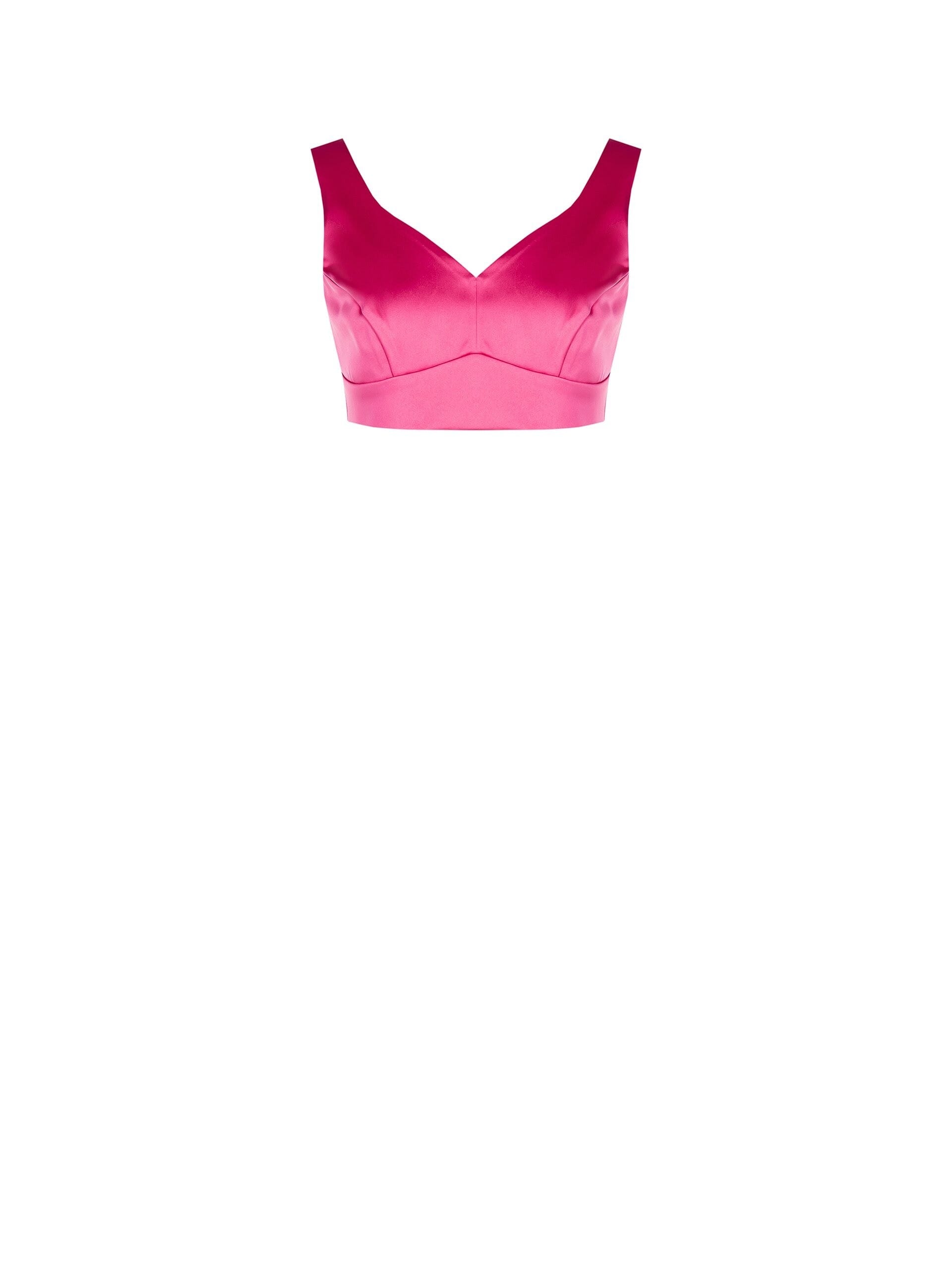 Top crop in raso,tinta unita,scollo a V,senza maniche.