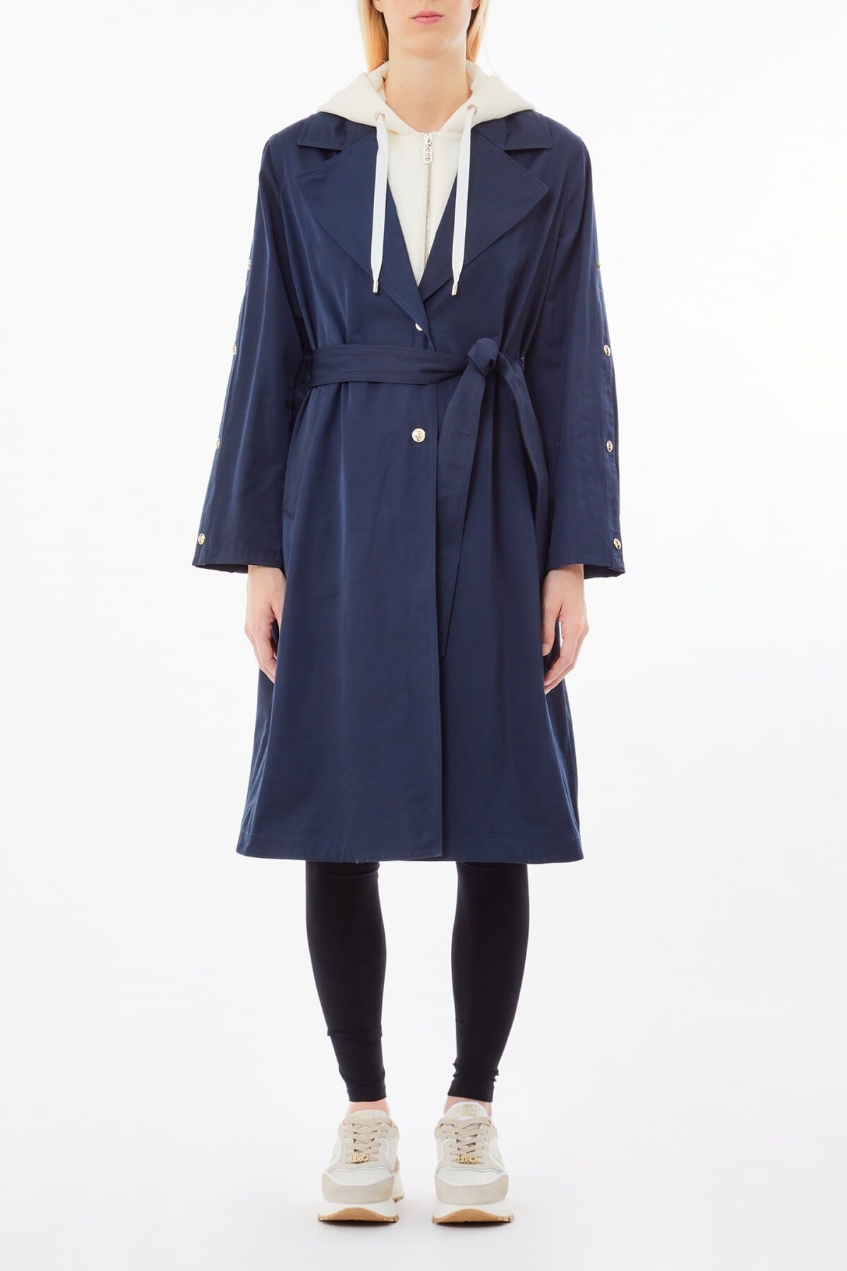 Trench con felpa staccabile tinta unita,maniche lunghe,cintura coordinata in vita.