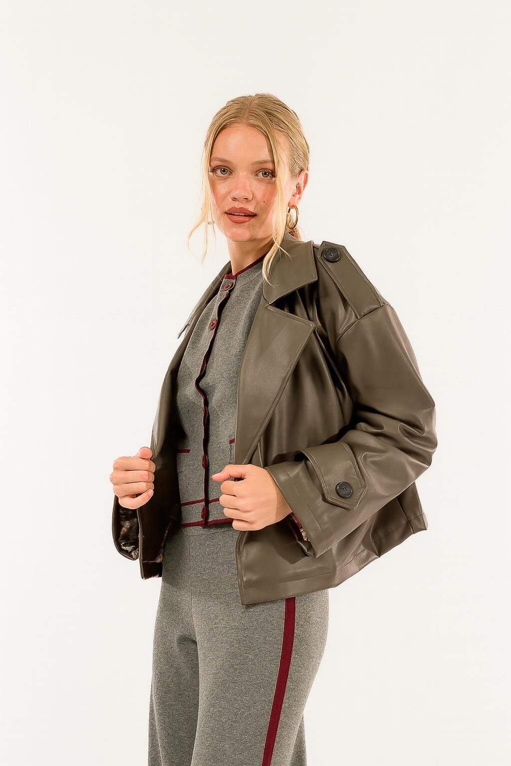 Dettagli di stile e carattere per un look che conquista: questa giacca corta in ecopelle è il tocco urban-chic che esalta la femminilità con personalità. Perfetta per distinguersi con eleganza in ogni occasione.
