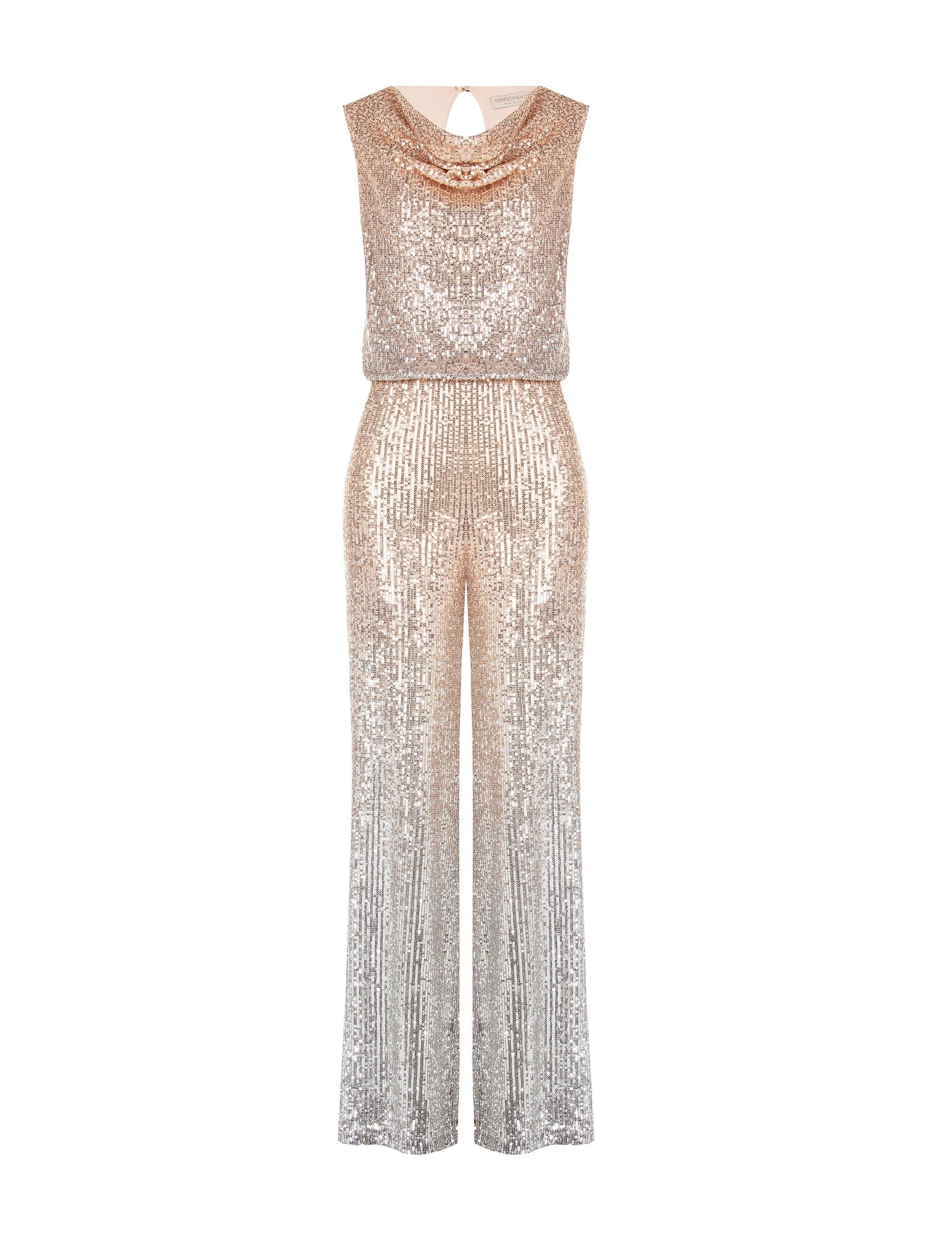 Tuta Intera Dritta Ricoperta di Paillettes Sfumate con Cut-Out Dietro